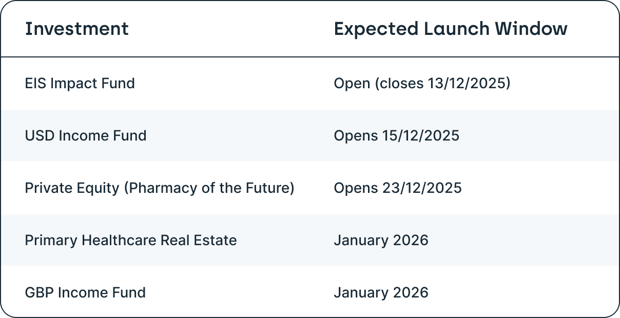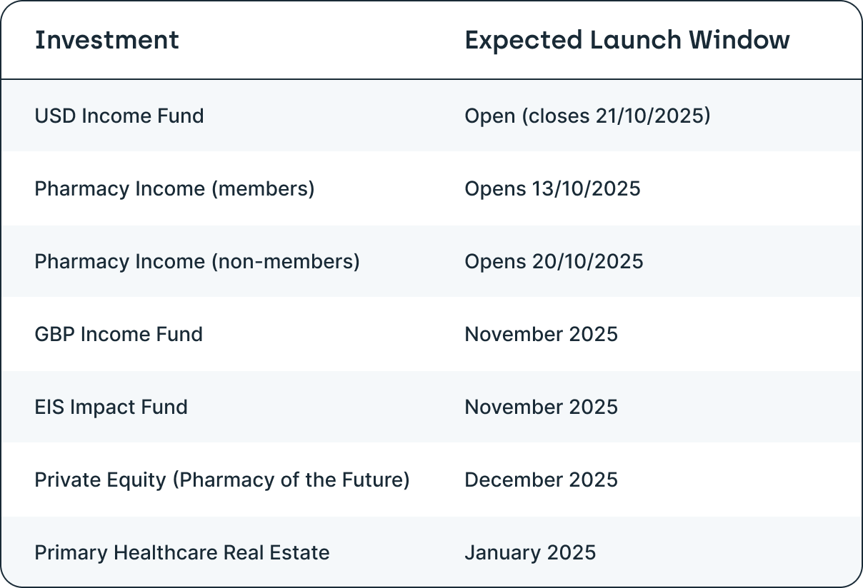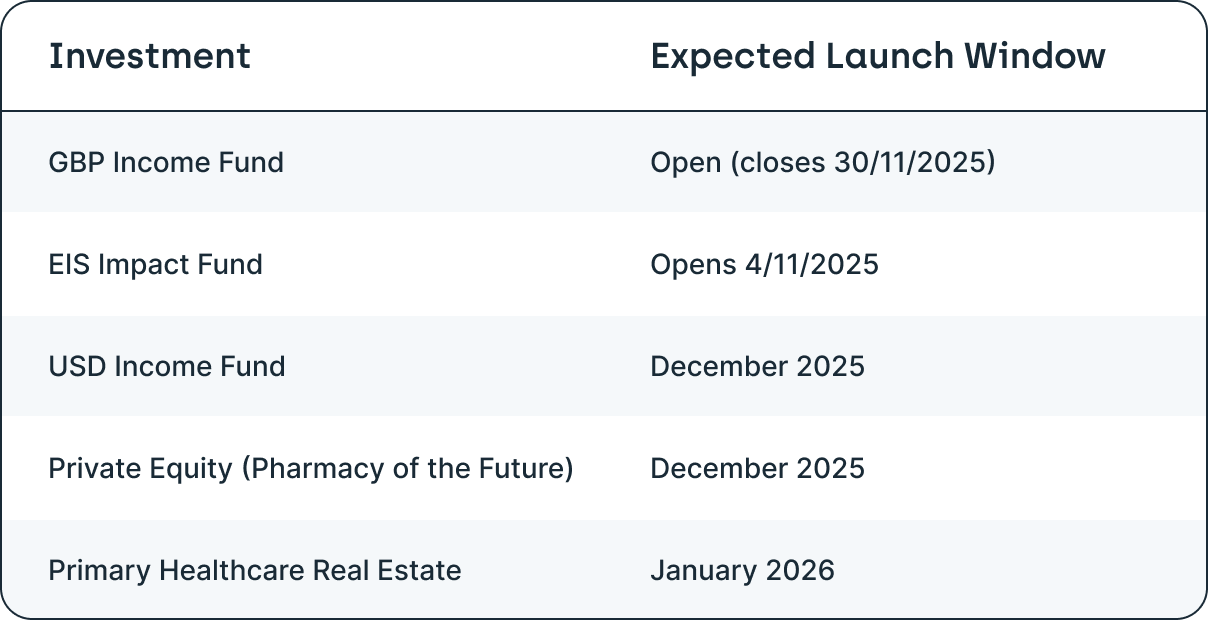 The following is the expected fund-raising activities for our core Cur8 Capital Funds & Strategies and Partner Managed Funds. We will present an update at the start of every month.