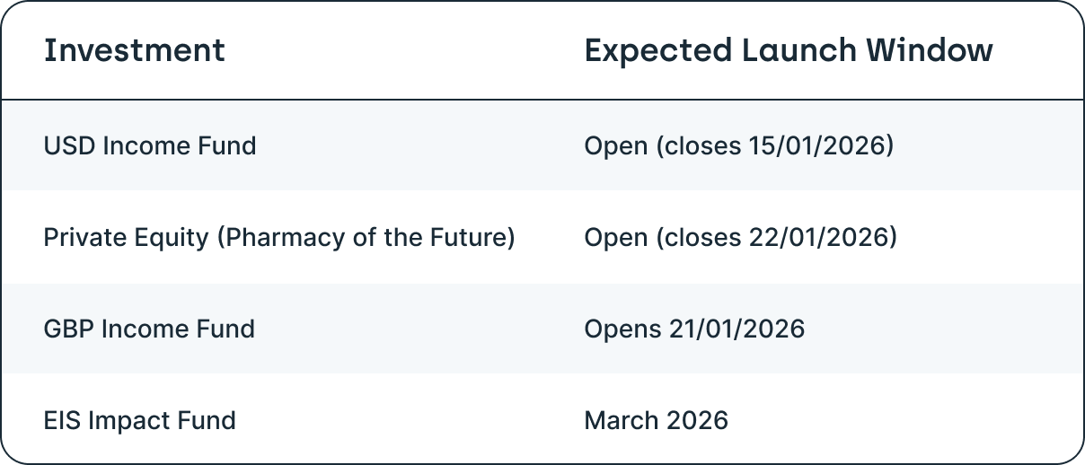 The following is the expected fund-raising activities for our core Cur8 Capital Funds & Strategies and Partner Managed Funds. We will present an update at the start of every month.